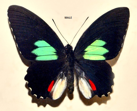 . Características: Vulgarmente conhecida por "Mariposa de espírito rosa", esta exótica e bonita borboleta nocturna pertence á família Saturniidae. Esta espécie exibe dimorfismo sexual, ou seja, existem diferenças acentuadas entre macho e fêmea. Assim o macho exibe um belo padrão de cor rosa pastel nas suas asas, atravessadas por uma larga faixa amarela central contornada por finas linhas escuras que se prolongam até á zona subapical das asas anteriores. Também a margem costal das asas anteriores são contornadas a rosa, nas quais possui uma marca negra e branca em forma de meia-lua que se destacam. As asas posteriores possuem longas e elegantes caudas. O seu corpo felpudo é de cor branco-creme, as pernas são cor-de-rosa, e o seu tórax é atravessado por uma faixa rosa que dá continuidade até ás asas. A fêmea distingue-se facilmente do macho pelas asas um pouco mais largas e de cor verde pastel pálido. As caudas das suas asas posteriores são mais curtas que as do macho. A sua envergadura varia entre os 11 e os 13 cm de comprimento.