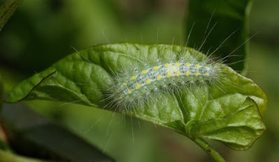 . Alimentação: A lagarta é verde clara com vários tufos de longos e finos pelos, e possui na zona dorsal faixas amarelas entre os segmentos do corpo. Alimenta-se de plantas da família Convolvulaceae. Na fase da metamorfose a lagarta fixa-se na planta hospedeira de cabeça para baixo para se transformar em crisálida e posteriormente em adulto.