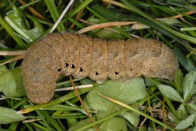 . Alimentação: A lagarta é verde e possui o corpo revestido por uma pilosidade de pequenos e finos pelos esbranquiçados. Apresenta também na zona lateral do corpo uma linha amarelada. Alimenta-se de plantas da família Fabaceae entre as quais; (Lotus corniculatus), (Medicago lupulina),(Ononis repens),(Lotus pedunculatus) e (Trifolium dubium). Na fase da metamorfose a lagarta transforma-se em crisálida no solo junto ao caule planta hospedeira e sob a matéria orgânica, onde mais tarde irá emergir o inseto adulto.